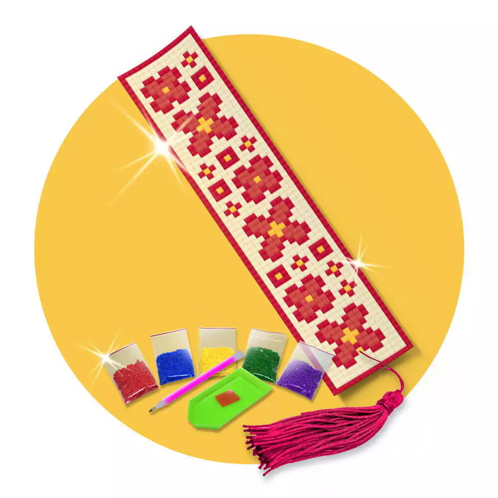Kit Completo | Marcador de Páginas Flores Vermelhas 1Un | 4,2x18,9cm - Diamante Redondo|Diamond Painting 5D DIY