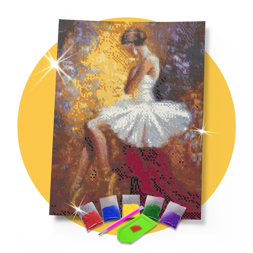 Kit Pintura com Diamantes | Bailarina 30x42cm - Diamante Redondo | Diamond Painting 5D DIY