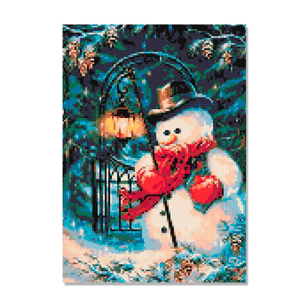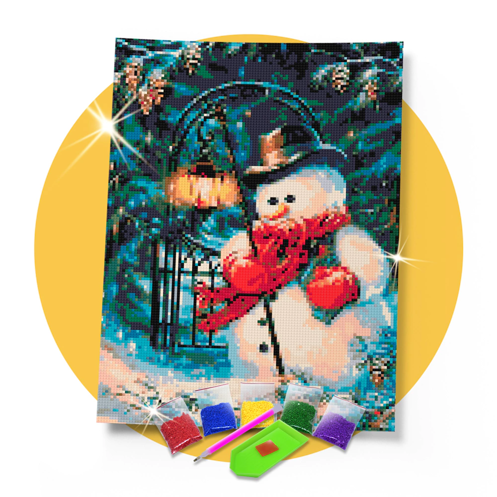 Kit Pintura com Diamantes | Boneco de Neve no Parque 30x42cm - Diamante Redondo | Diamond Painting 5D DIY