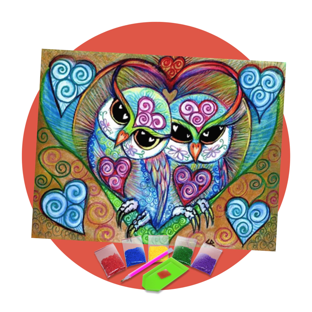 Kit Pintura com Diamantes | Corujinhas 30x40cm - Diamante Redondo. Contém Diamantes AB que possuem brilho Boreal, canvas