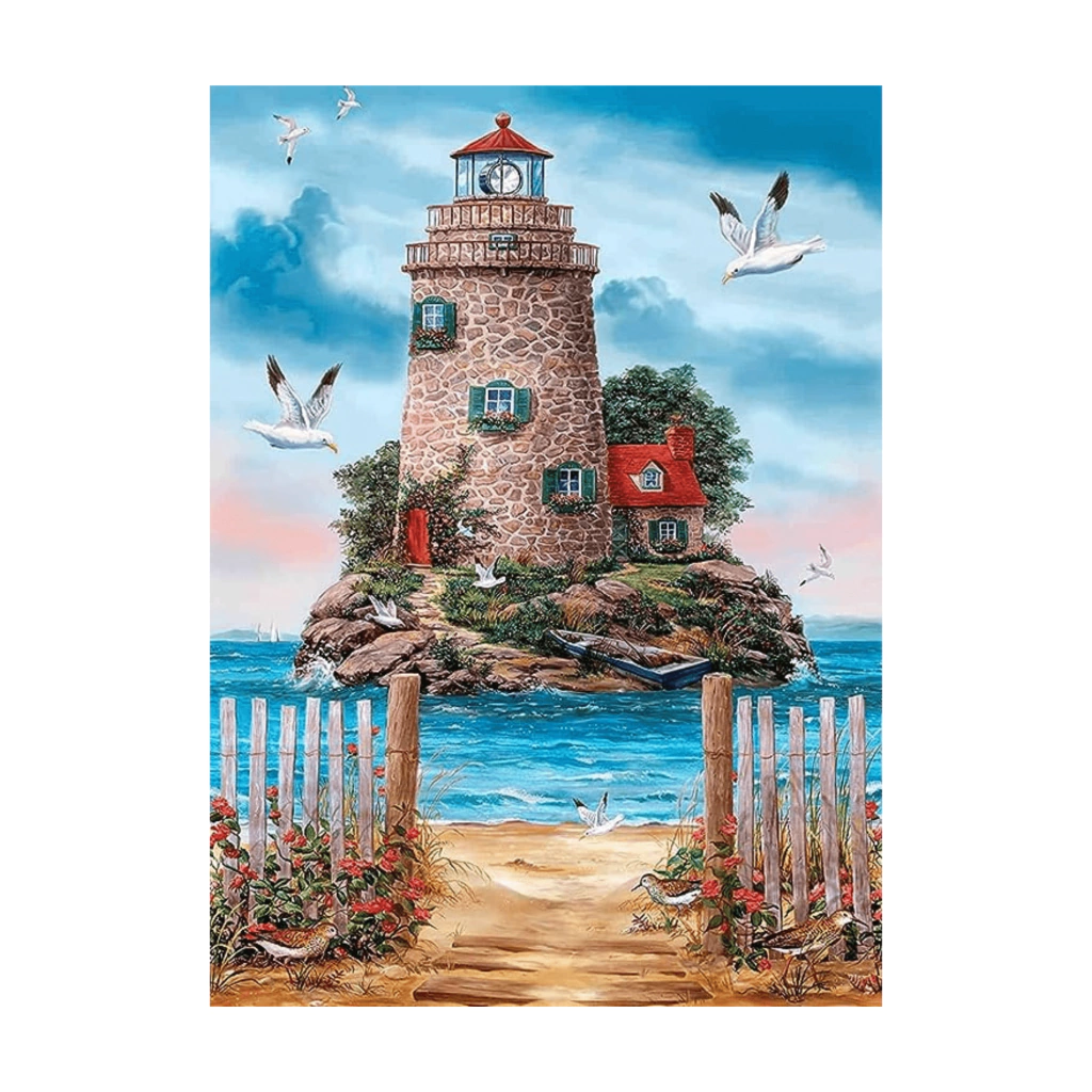 Kit Pintura com Diamantes | Farol à Beira Mar 30x42cm - Diamante Redondo.