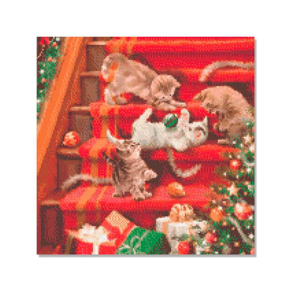 Kit Pintura com Diamantes | Felinos na Escada 45x45cm - Diamante Redondo | Diamond Painting 5D DIY
