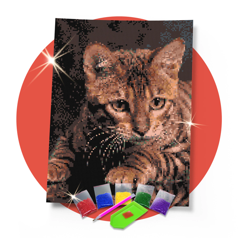 Kit Pintura com Diamantes | Gatinho 30x42 - Diamante Redondo | Diamond Painting 5D DIY