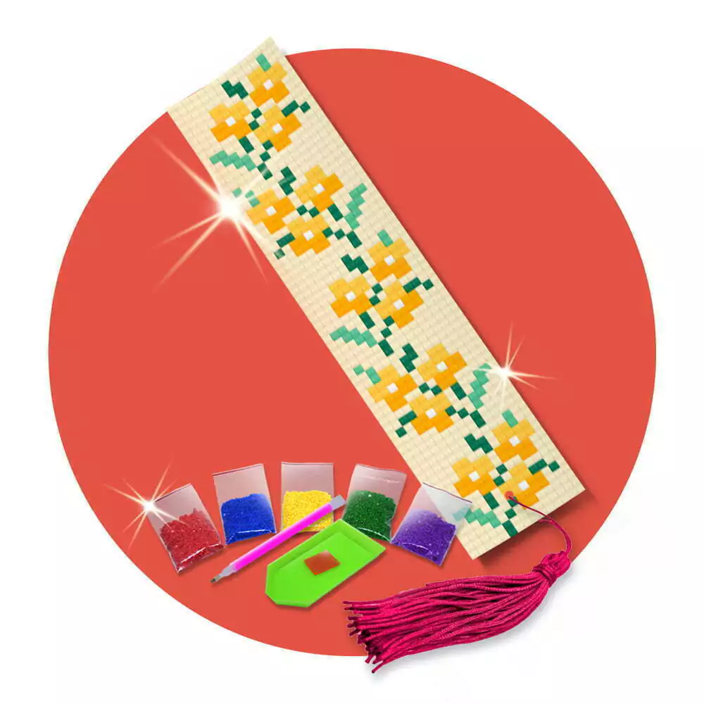 Kit Pintura com Diamantes | Marcador de Páginas Flores Amarelas 1Un | 4,2x18,9cm - Diamante Redondo | Diamond Painting D