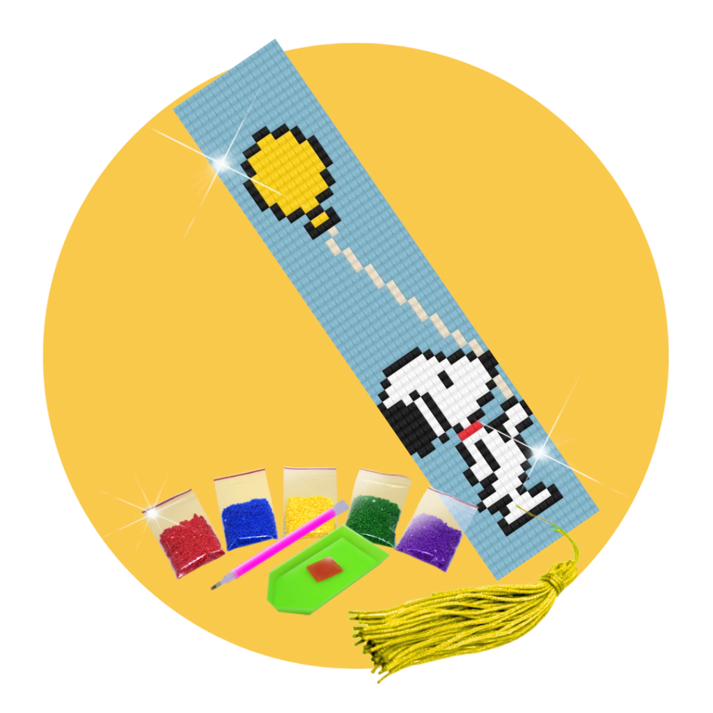 Kit Pintura com Diamantes | Marcador de Páginas Snoopy 1Un | Diamante Redondo | Diamond Painting DIY
