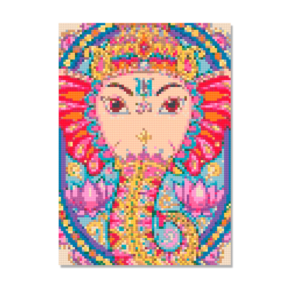 Kit Pintura com Diamantes | Pequeno Ganesha 21x30cm - Diamante Redondo | Diamond Painting 5D DIY