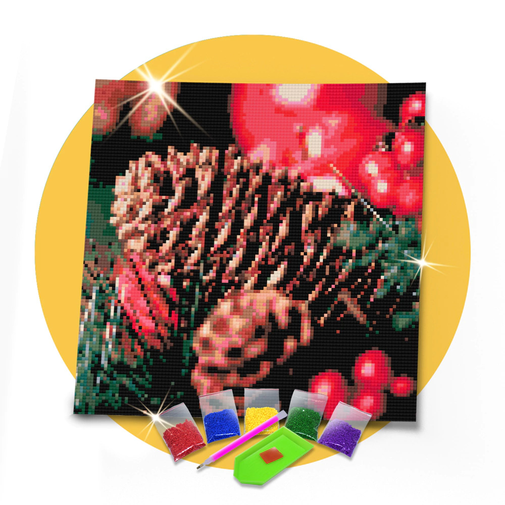 Kit Pintura com Diamantes | Pinha Decorativa - Diamante Redondo | Diamond Painting 5D DIY