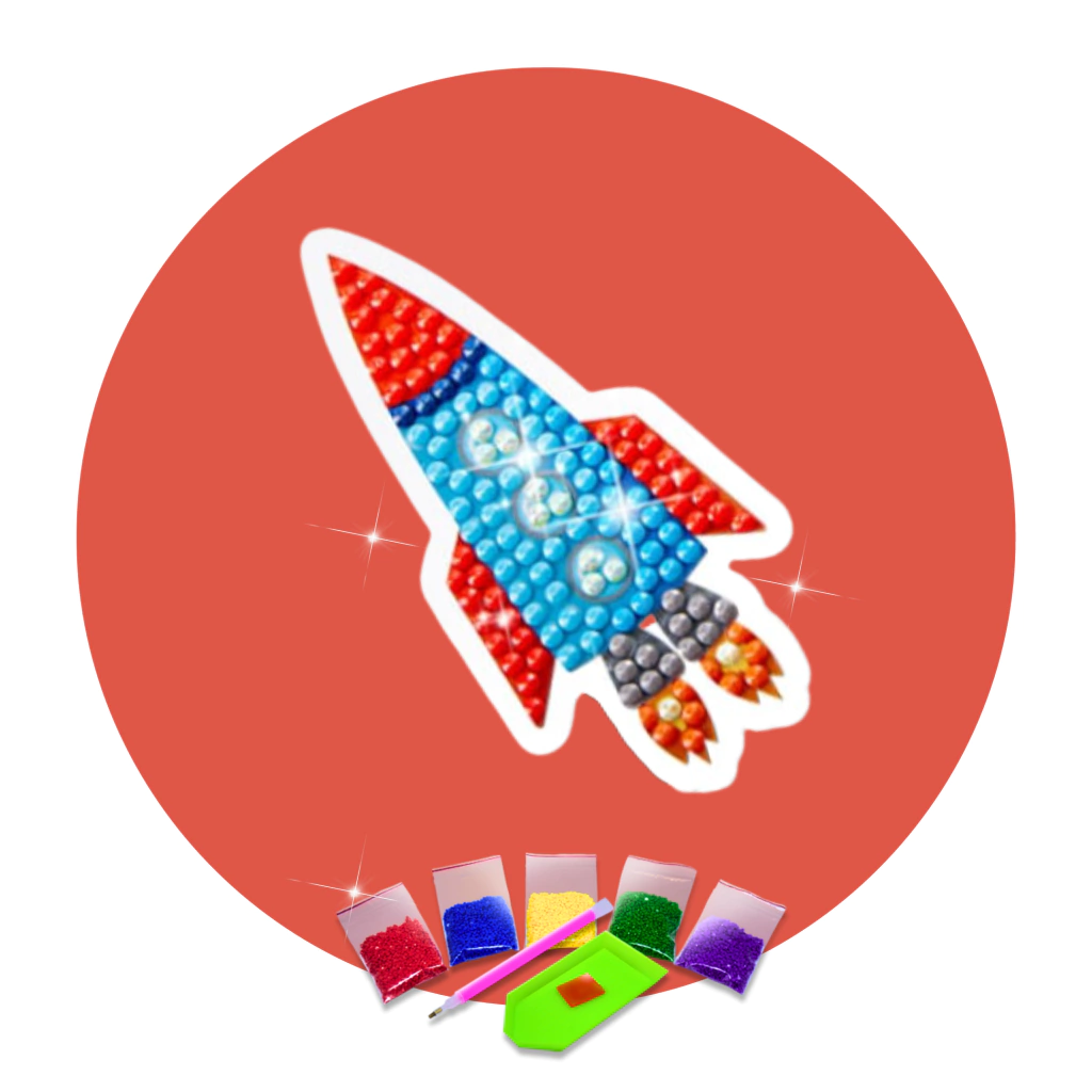 Kit Pintura com Diamantes | Sticker Foguete Azul 1un. - Diamante Redondo | Diamond Painting 5D DIY