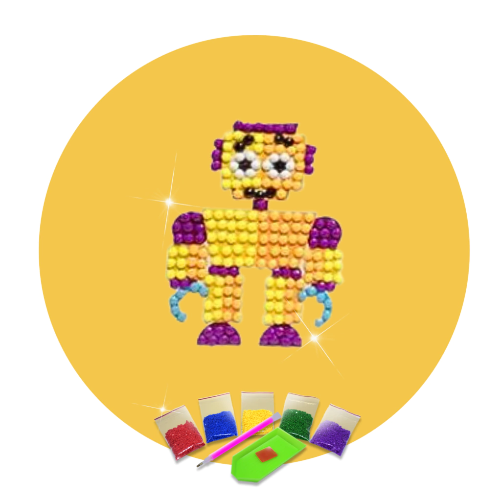 Kit Pintura com Diamantes | Sticker Robôzinho Amarelo 1un. - Diamante Redondo | Diamond Painting 5D DIY