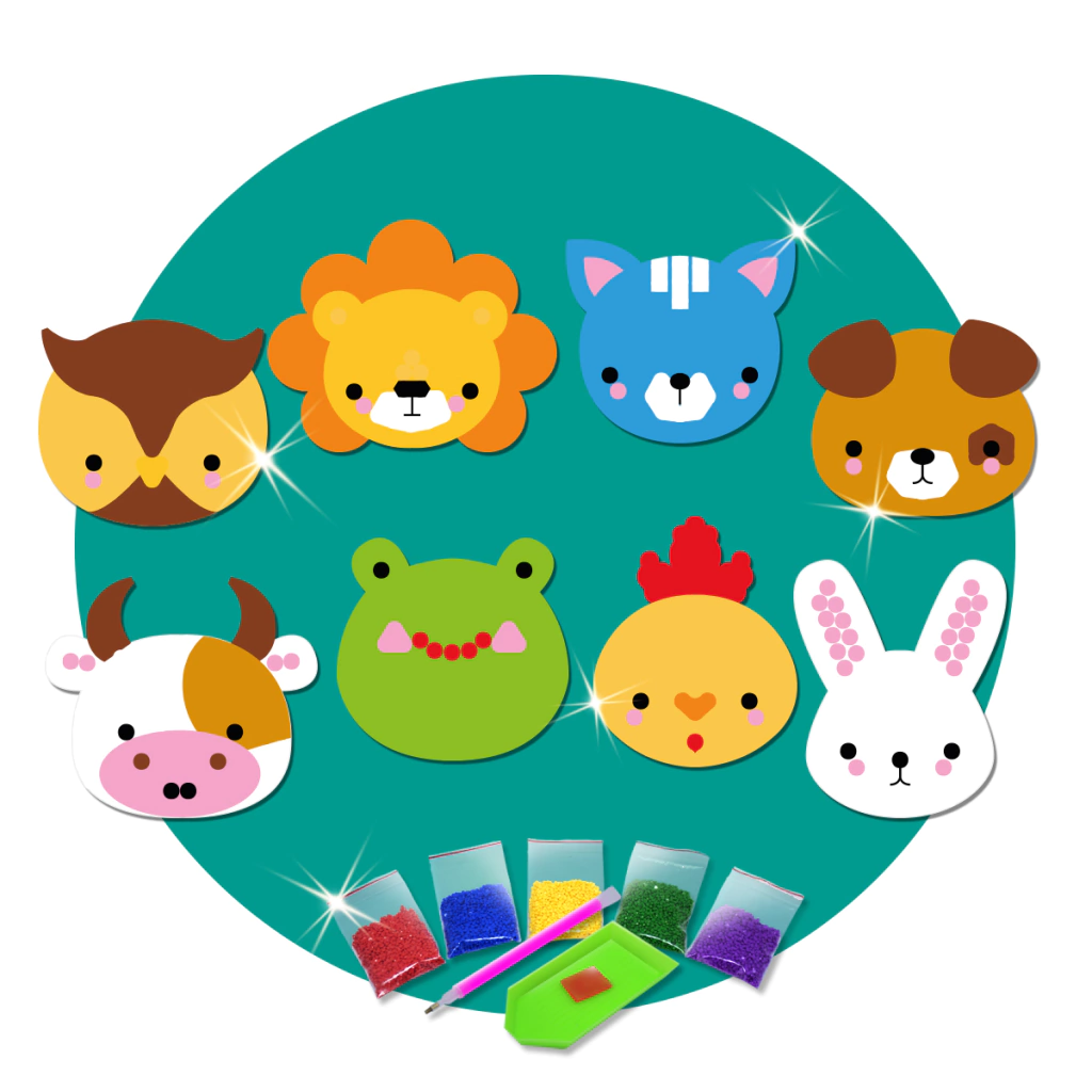 Kit Pintura com Diamantes | Stickers Animais 8Un - Diamante Redondo | Diamond Painting 5D DIY