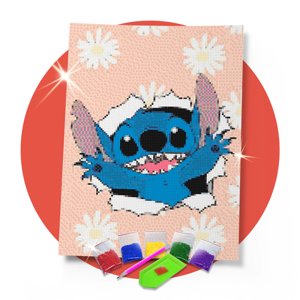 Kit Pintura com Diamantes | Stitch 30x42cm - Diamante Redondo | Diamond Painting 5D DIY