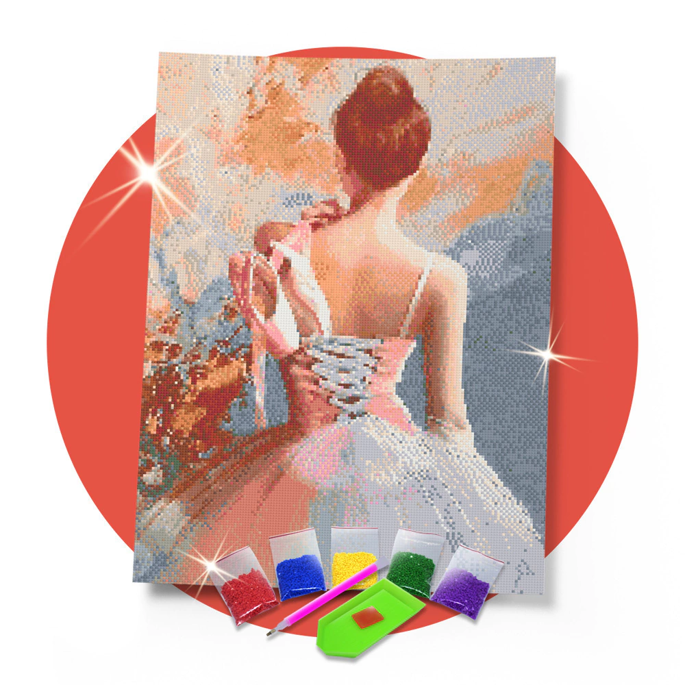 Kit Pintura com Diamantes | Tela Bailarina Clássica - 42 x 60 cm - Diamante Redondo | Diamond Painting 5D DIY