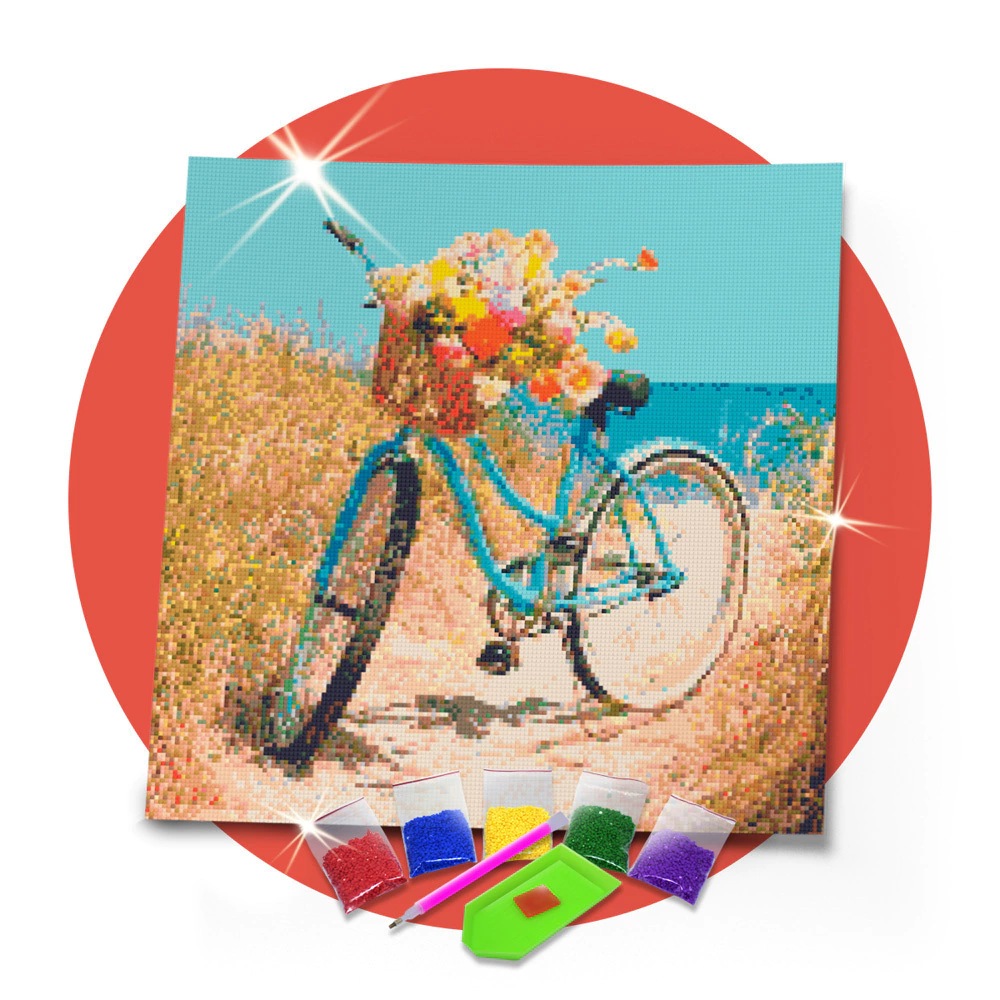 Kit Pintura com Diamantes | Tela Bicicleta na Praia - 45 x 45 cm - Diamante Redondo | Diamond Painting 5D DIY