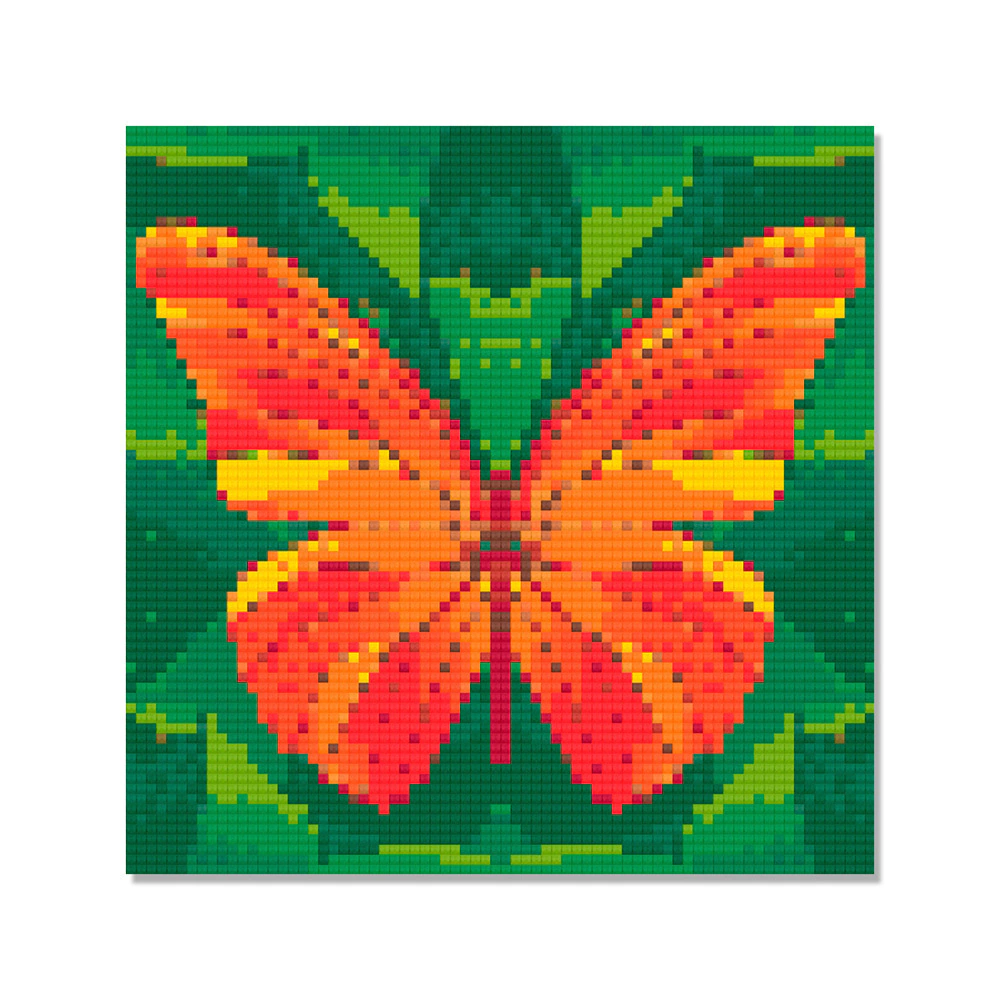 Kit Pintura com Diamantes | Tela Borboleta Colorida - 21 x 21 cm - Diamante Redondo | Diamond Painting 5D DIY