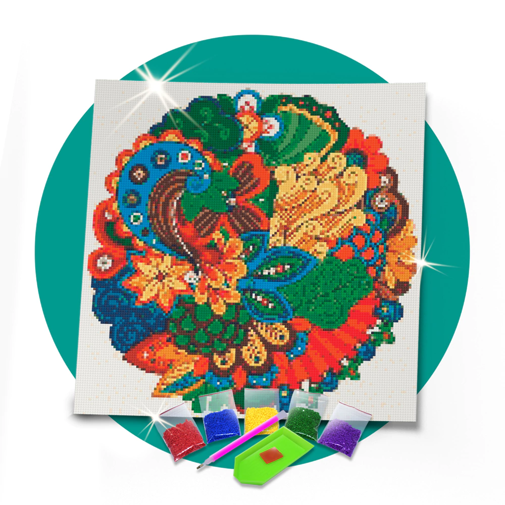 Kit Pintura com Diamantes | Tela Mandala Exótica 40 x 40 cm - Diamante Redondo | Diamond Painting 5D DIY