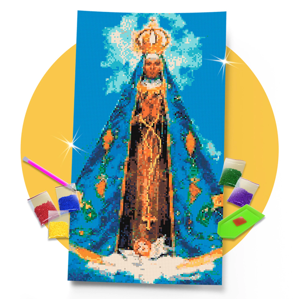 Kit Pintura com Diamantes | Tela Padroeira do Brasil 30 x 57 cm - Diamante Redondo | Diamond Painting 5D DIY