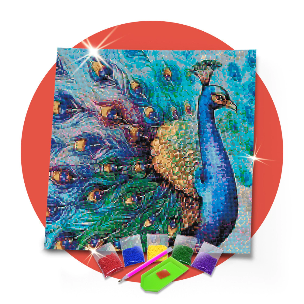 Kit Pintura com Diamantes | Tela Pavão Azul - 45 x 45 cm - Diamante Redondo | Diamond Painting 5D DIY
