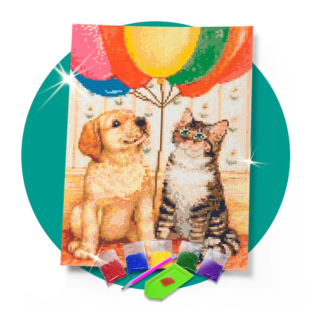 Kit Pintura com Diamantes | Tela Pets com Balão - 30 x 42 cm - Diamante Redondo | Diamond Painting 5D DIY