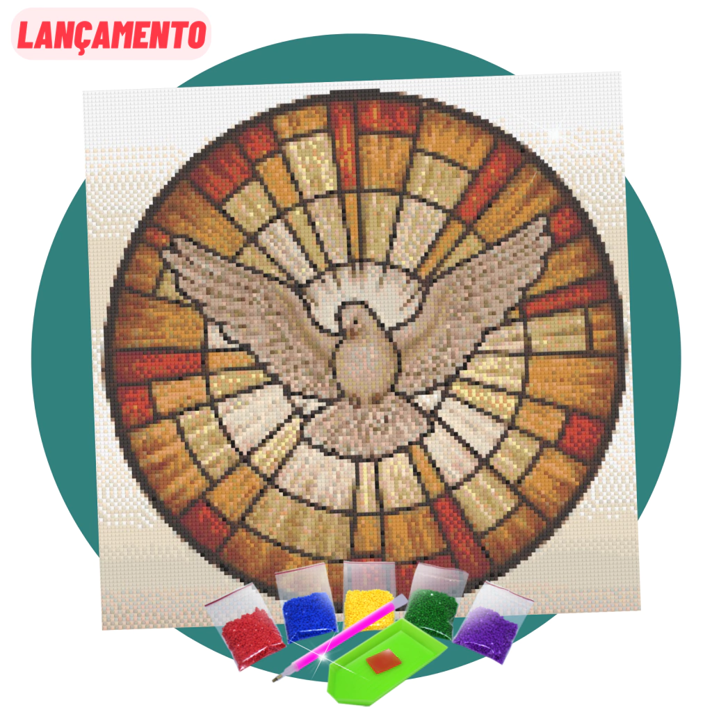 Kit Pintura com Diamantes | Tela Pomba Sagrada 40x40cm - Diamante Redondo | Diamond Painting 5D DIY