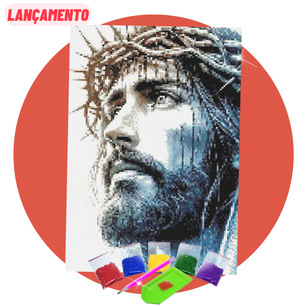 Kit Pintura com Diamantes | Tela Rei Jesus 30x42cm - Diamante Redondo | Diamond Painting 5D DIY