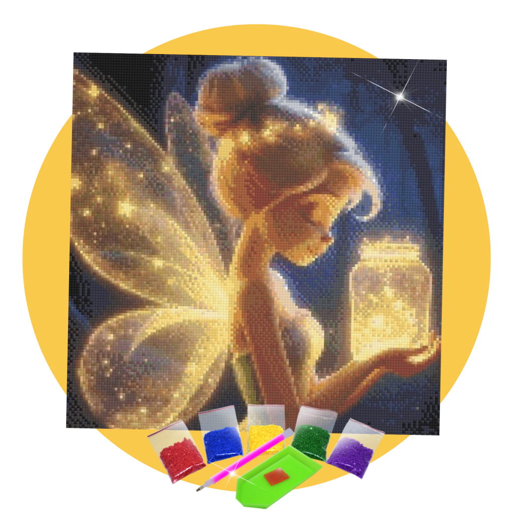 Kit Pintura com Diamantes | Tela Sininho 40x40cm - Diamante Redondo | Diamond Painting 5D DIY