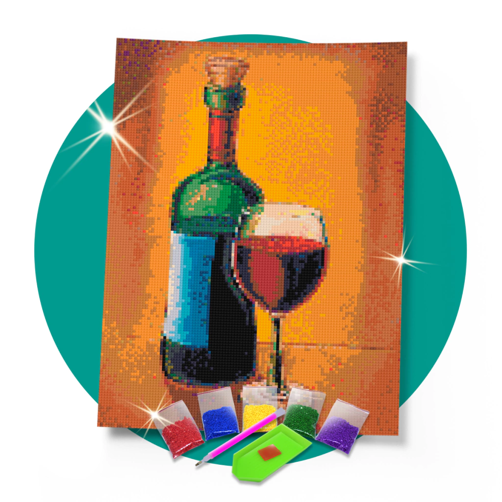 Kit Pintura com Diamantes | Tela Taça de Vinho- 30 x 42 cm - Diamante Redondo | Diamond Painting 5D DIY