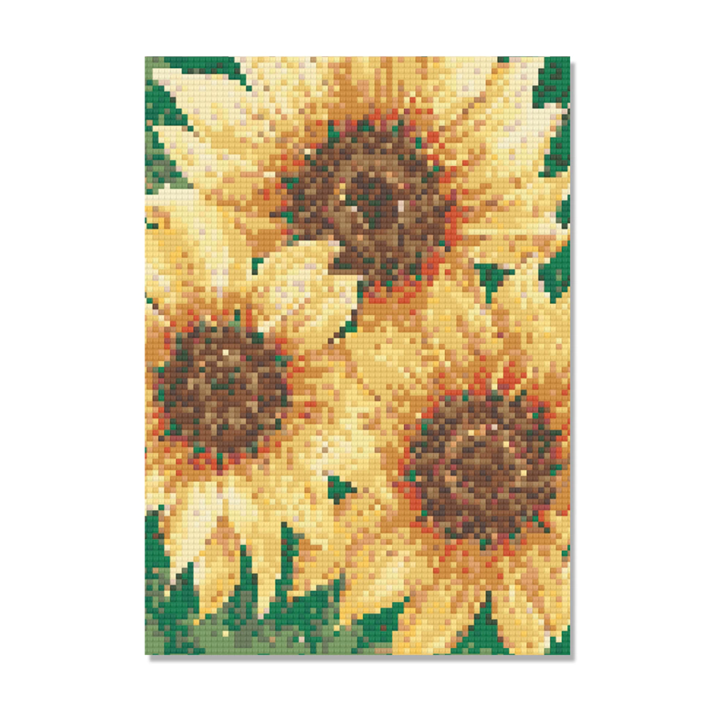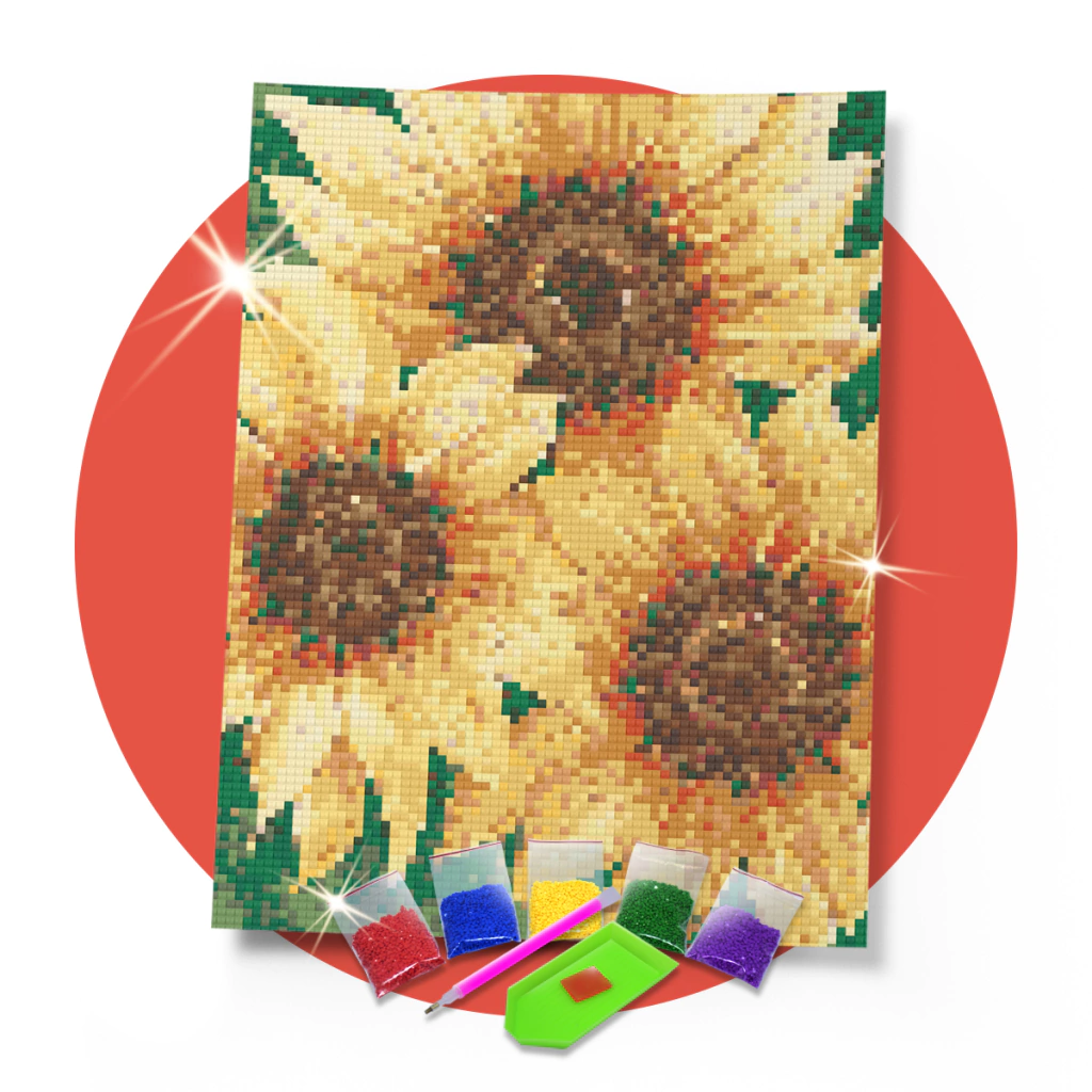 Kit Pintura com Diamantes | Tela Três Girassóis 21x30cm - Diamante Redondo | Diamond Painting 5D DIY