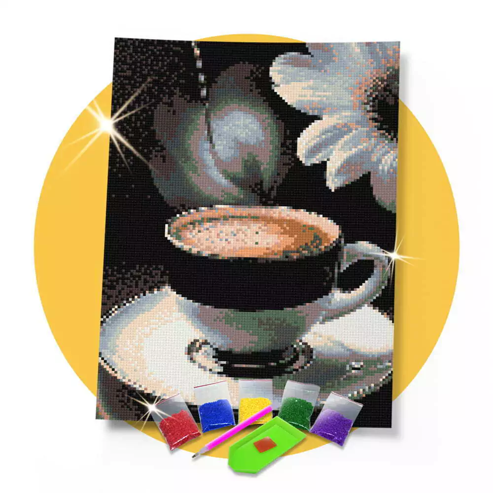 Kit Pintura com Diamantes | Xícara com Café 30x42- Diamante Redondo | Diamond Painting 5D DIY